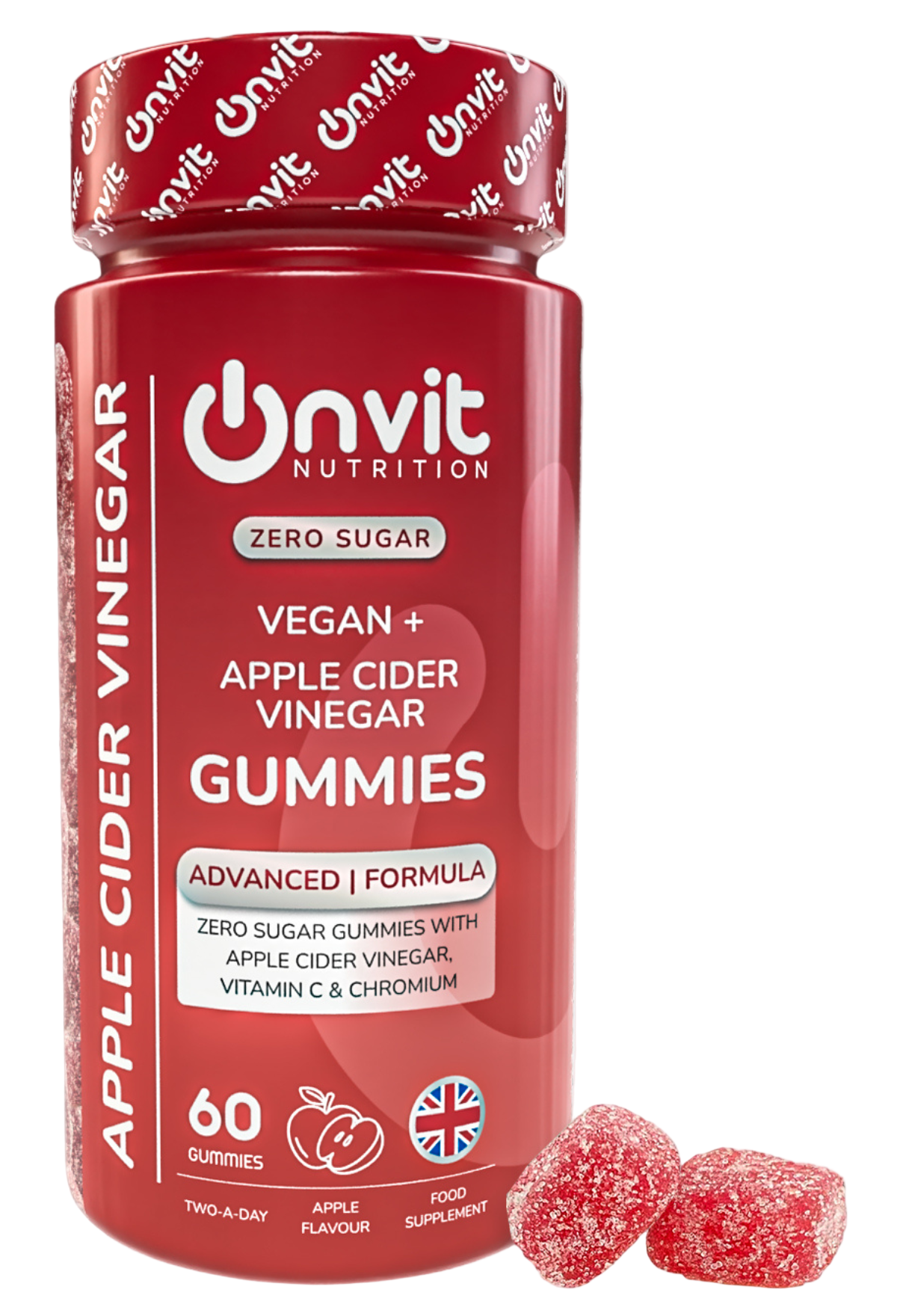 OnVit Nutrition Apple Cider Vinegar Gummies deliver 1000mg ACV per serving with added Vitamin C & Chromium to support metabolism, digestion, and immunity. Enjoy all the benefits of apple cider vinegar without the harsh taste — in a clean, vegan, pectin-based gummy. Delicious apple flavour, simple to take every day, and designed to fit your healthy lifestyle.