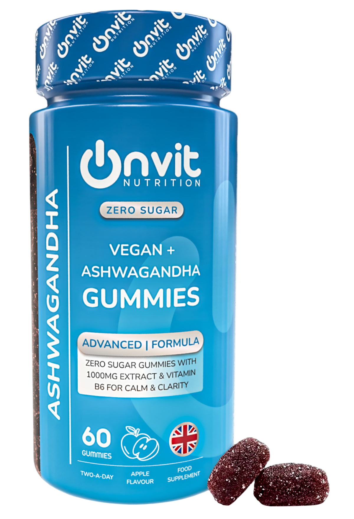 OnVit Nutrition Ashwagandha Gummies deliver 1000mg high-strength extract with Vitamin B6 to support calm, clarity and balanced energy. Known as “Indian Ginseng,” Ashwagandha helps reduce stress, improve focus and support mood. Delicious apple flavour in a clean, vegan formula — without the sugar or harsh aftertaste.